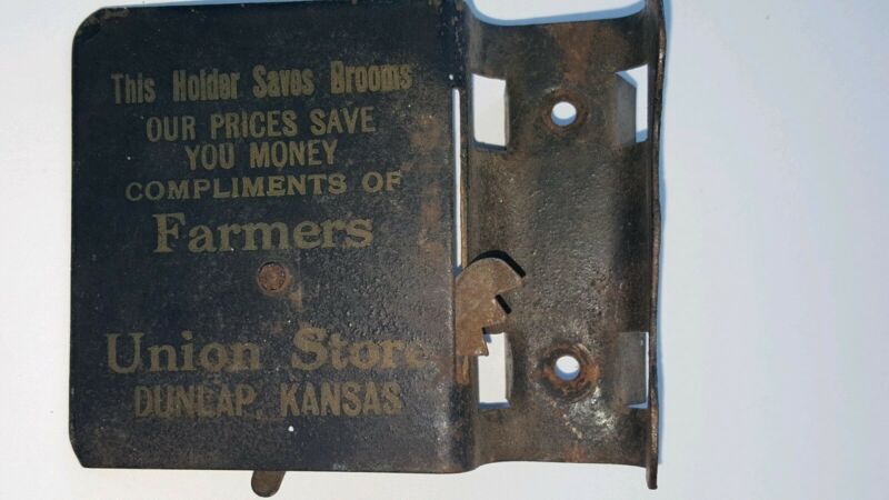 Antique Farmers Union Store Dunlap Kansas Advertising SIGN Broom Holder