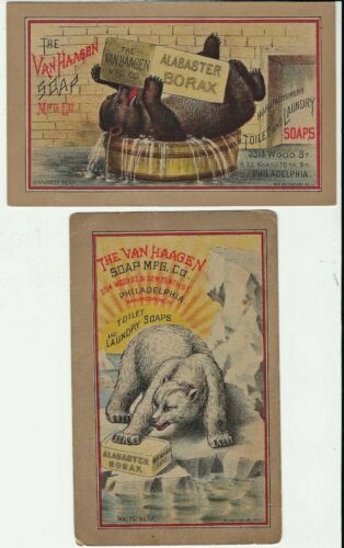 TWO VAN HAAGEN SOAP TRADE CARDS with BEARS