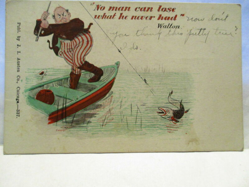 Title (ebay affiliate link): 1908 POSTCARD NO MAN CAN LOSE WHAT HE NEVER HAD - FISHERMAN