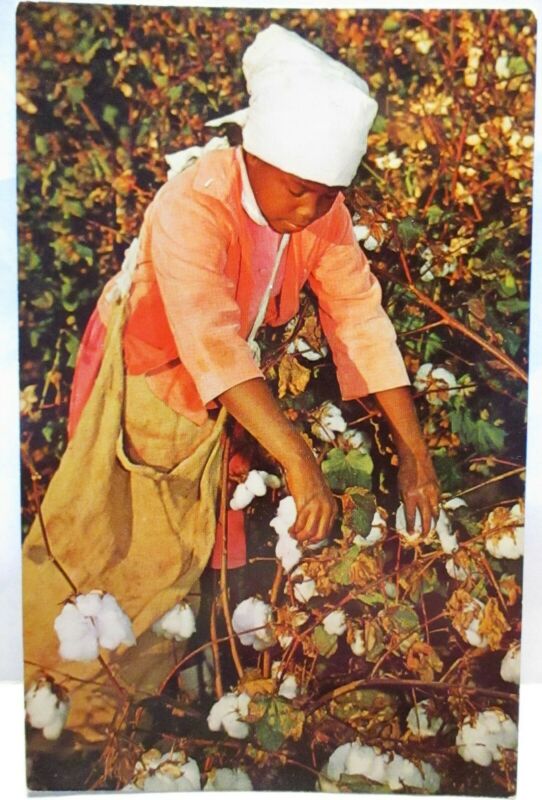 Title (ebay affiliate link): 1950s POSTCARD PICKING COTTON THE HARD WAY, BLACK WOMAN