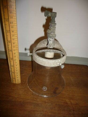 Antique Gas Lamp with large clear Pyrex Shade . Bell shaped Pyrex lamp shade