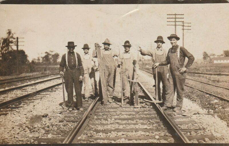 Railroad Workers on Tracks Berea Ohio OH rppc