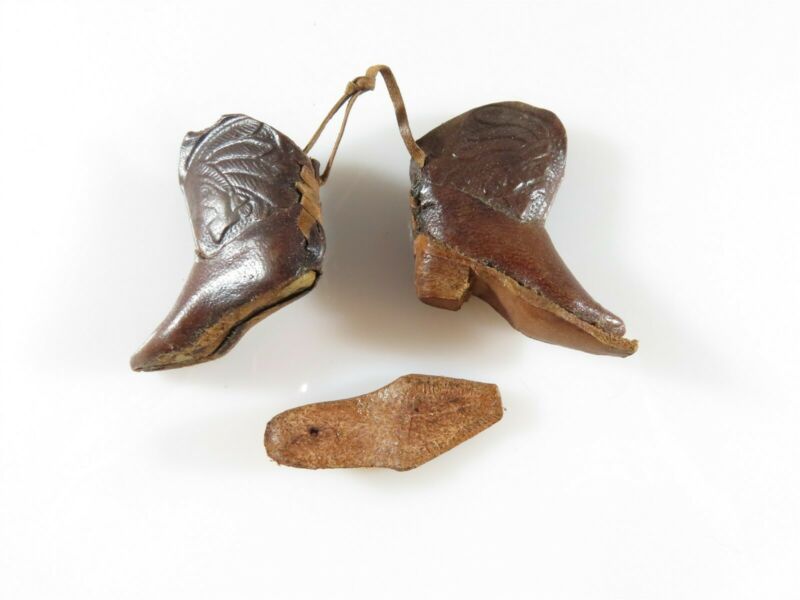 Title (ebay affiliate link): Miniature Leather Cowboy Cowgirl Boots with Stamped Indian Design