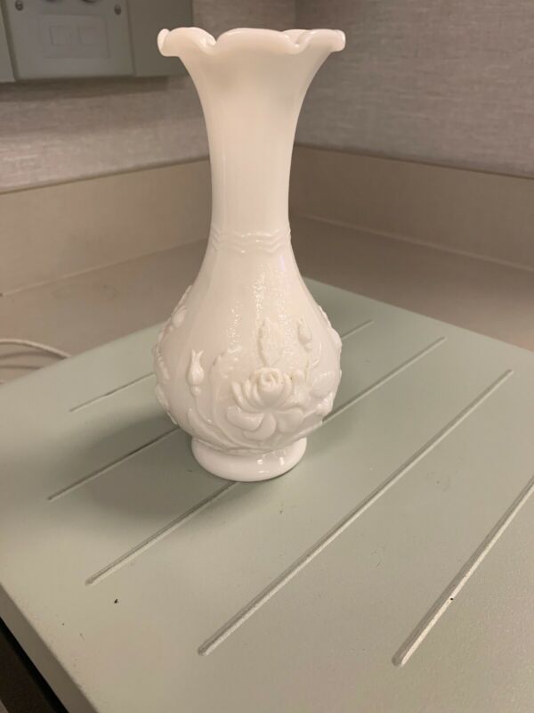 Title (ebay affiliate link): VINTAGE IMPERIAL MILK GLASS VASE, GORGEOUS ROSE DESIGN, MINT CONDITION!