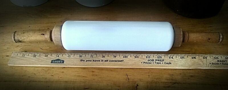 Title (ebay affiliate link): 18" ANTIQUE WHITE MILK GLASS ROLLING PIN WITH WOOD HANDLES