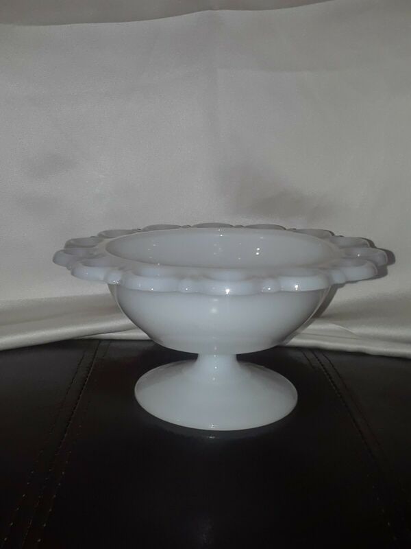 Title (ebay affiliate link): Vintage White Milk Glass Compote Bowl Lace Edge Pedestal Candy Dish