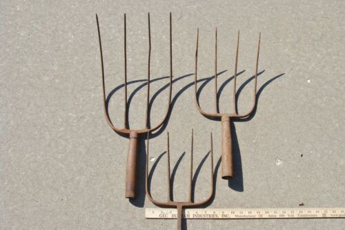 3 PRIMITIVE Vintage Hay Pitch Fork Head Farm Tool Garden Repurpose Craft Decor