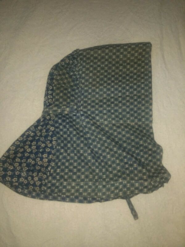 Early Antique Blue Calico Ladies Bonnet Staved Peg Rack Textile AAFA