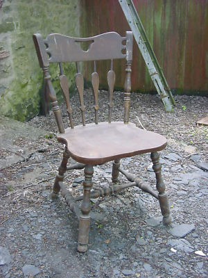 a very peculiar looking 1950s rock-maple kitchen chair