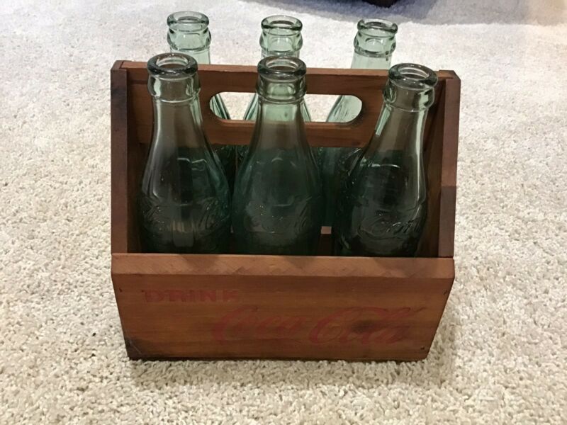 Title (ebay affiliate link): Coca Cola Wooden Case with 6 Green Bottles Vintage
