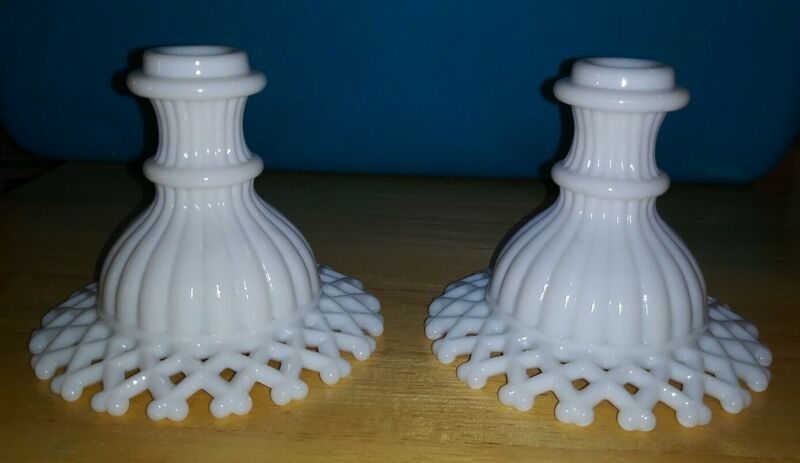 Title (ebay affiliate link): Vintage Milk Glass Candleholders With Lattice Bottom, Excellent Condition