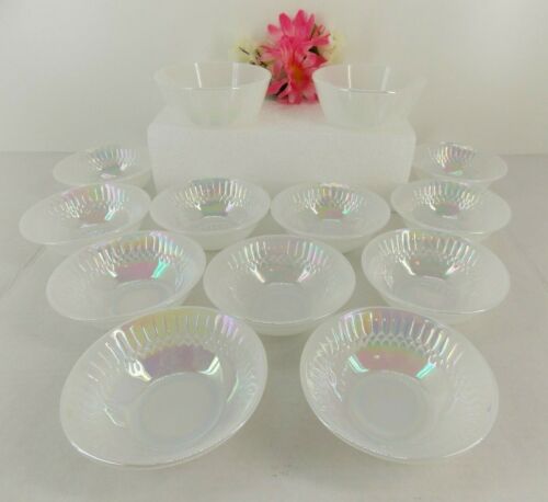 Vtg 13PC Federal Milk Glass Iridescent Heat Proof Bowls Pearl Moonglow