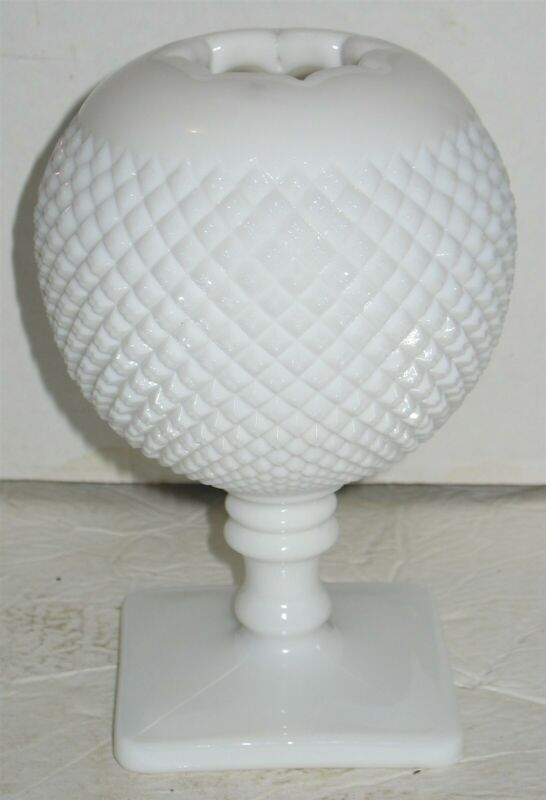 Title (ebay affiliate link): Vintage White Milk Glass Round on a Pedestal Rose Bowl Bud Flower Vase