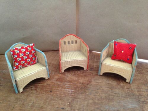 Title (ebay affiliate link): Set of 3 Antique Papier Mache Dollhouse Rattan Chairs Furniture Hand Painted