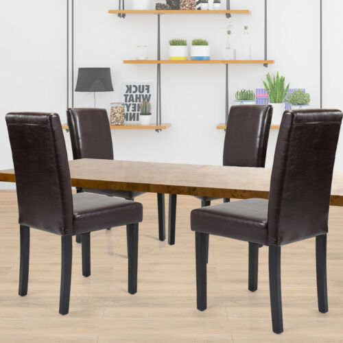 Set of 4 Pcs Dining Room Chairs Kitchen Vintage Wood PU Leather Design Brown New