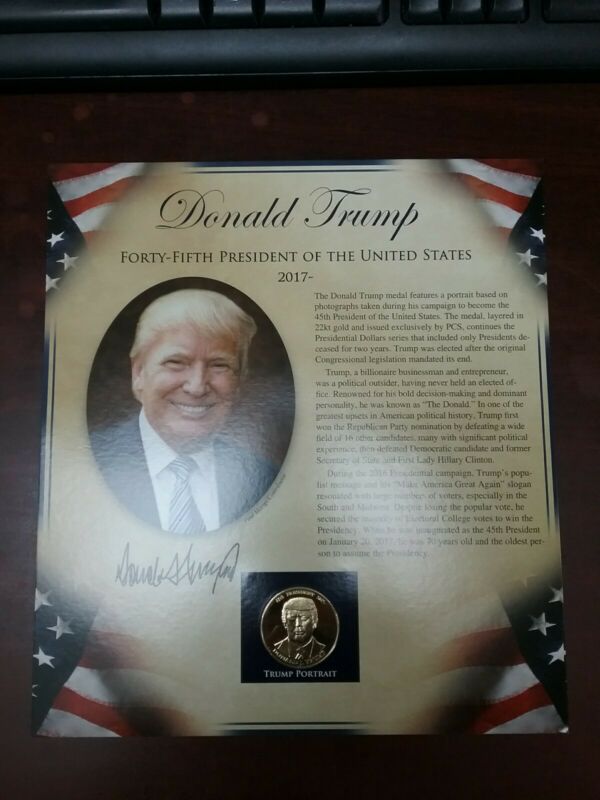 Title (ebay affiliate link): Donald Trump 45th US President Commemorative Medal & Stamp Collectible Display