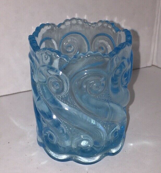 VINTAGE BLUE DEPRESSION GLASS TOOTHPICK HOLDER VICTORIAN Design