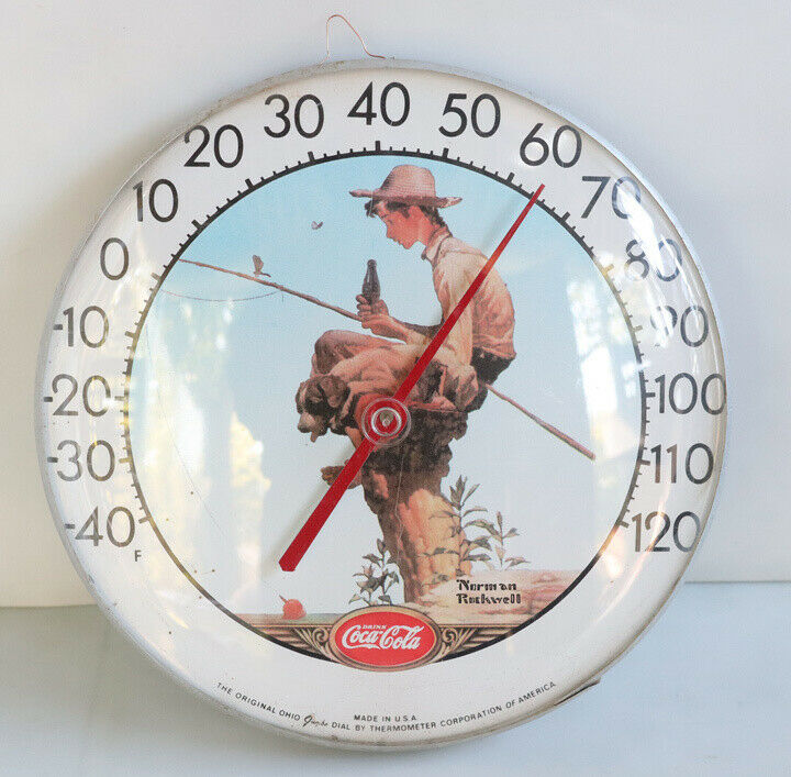 Vintage Coca Cola FISHING BOY Norman Rockwell 12" Round Thermometer
