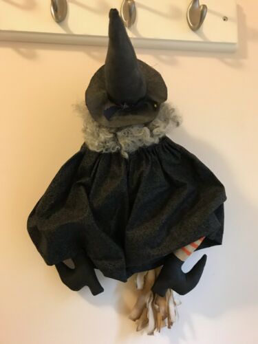 Title (ebay affiliate link): Primitive Halloween Hanging Crashing Witch Black Grey Hair Broom Prim Folk Art