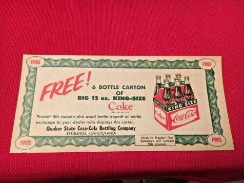Title (ebay affiliate link): 1950''s Coca Cola Free Bethlehem PA Quaker State Bottling Sign Card Soda Fountain