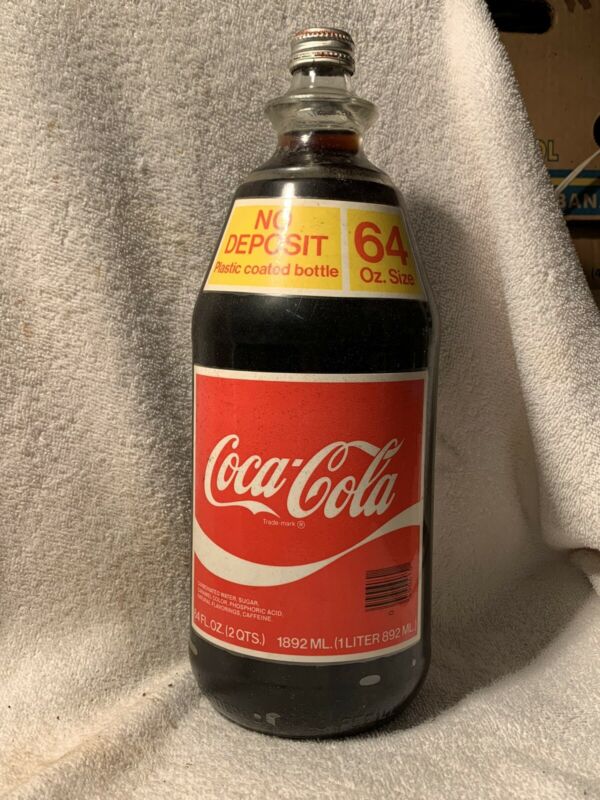 Title (ebay affiliate link): RARE FULL 64oz COCA-COLA NO DEPOSIT PLASTIC COATED ACL SODA BOTTLE