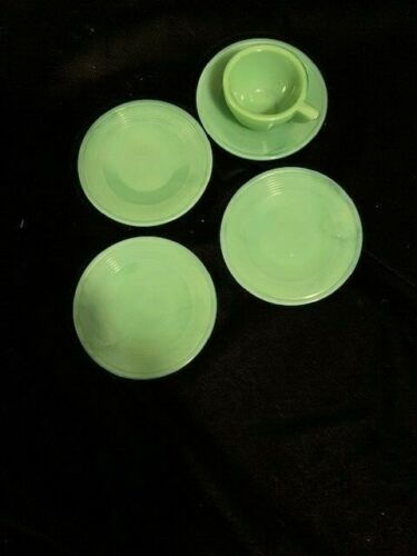 Vintage Akro Agate / Jadeite Child''s Dishes (4 saucers and 1 cup)