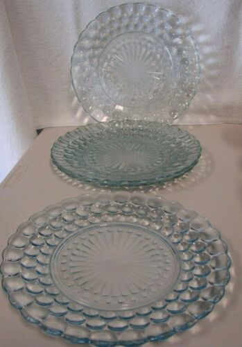 4 ANCHOR HOCKING SAPPHIRE BLUE BUBBLE GLASS DINNER PLATES