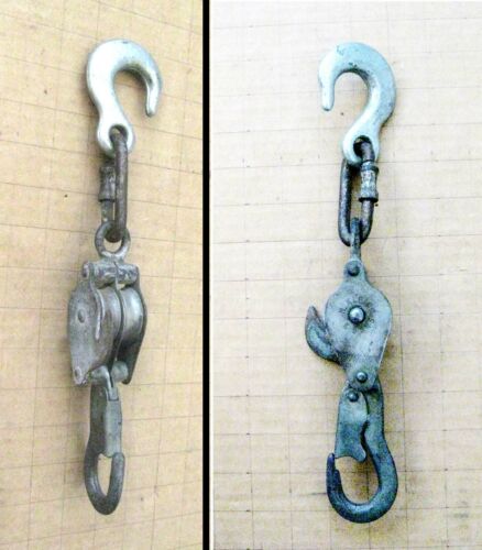 Title (ebay affiliate link): Vintage M Klein & Sons Double Sheave Pulley Block 1802-30 + Carabiner & Hook