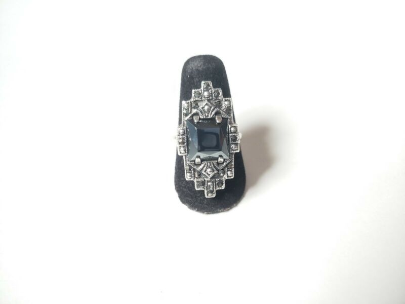 ANTIQUE ART DECO STERLING SILVER 925 RING W/HEMATITE & MARCASITE ACCENTS SZ 7.5