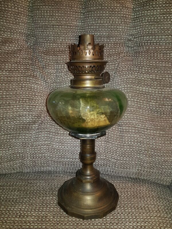 Vintage/Antique Oil Lamp Base, Font & Burner Ornate Stand, Green Font