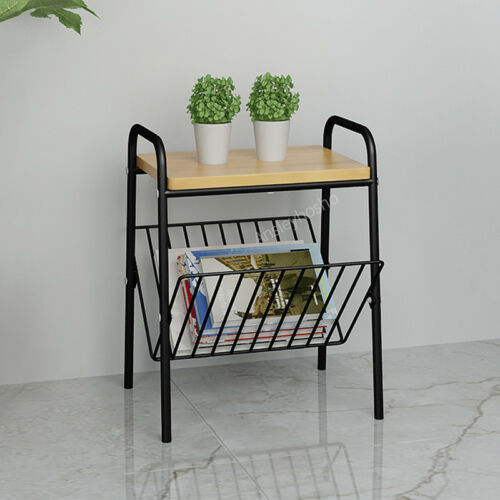 Vintage retro wood metal side table magazine rack holder living room storage New