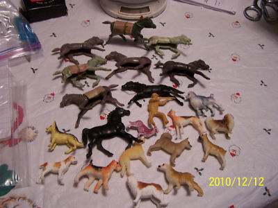 VINTAGE LOT OF HORSES, DOGS , A COWBOY/SOME LUCITE