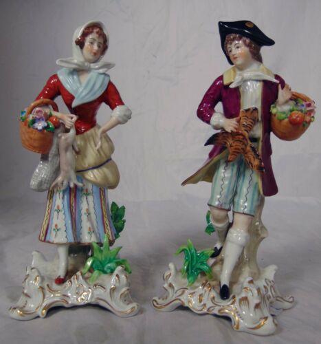 FINE PAIR German SITZENDORF Porcelain FIGURES Peasant Game