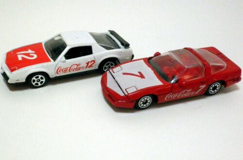 Title (ebay affiliate link): 2 Vintage Coca Cola Race cars Corvette & Firebird Corgi British made 1982 37yrs