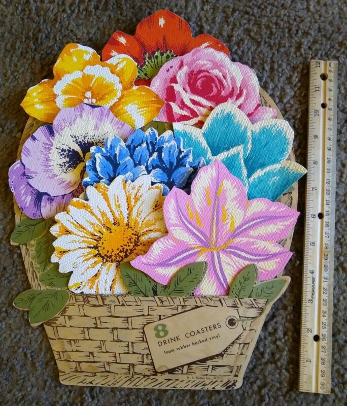 Title (ebay affiliate link): Vintage Dimestore In Store Display Flower Foam Coasters W/Coasters Complete Set