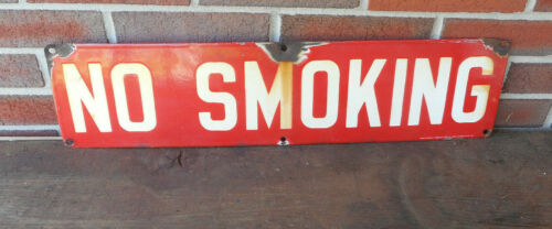 Title (ebay affiliate link): L4390- Antique No Smoking Porcelain Enamel Sign 24x6" Industrial Original Oil
