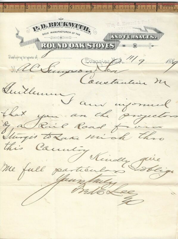 Title (ebay affiliate link): 04 P D BECKWITH ROUND OAK STOVES DOWAGIAC MI 1889 LETTERHEAD