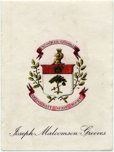 Title (ebay affiliate link): * IRISH Armorial bookplate of Joseph Malcolmson Greeves