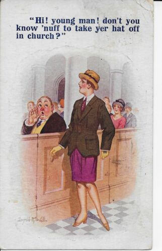 Bamforth Art Comic 810 Hi young man don''t you know ''nuff to take yer hat off in