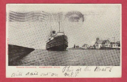 Title (ebay affiliate link): Muskegon Michigan Steamer entering Harbor lighthouse UDB postcard pm 1906 MI