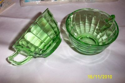 2 HOCKING GREEN DEPRESSION GLASS BLOCK OPTIC CUPS