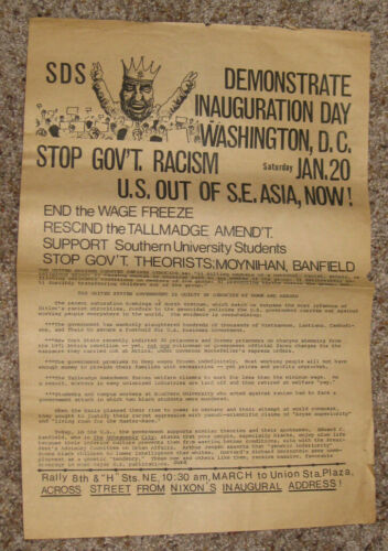 Title (ebay affiliate link): VINTAGE 1973 NIXON INAUGURATION PROTEST FLYER - SDS VIETNAM RACISM WAGE FREEZE +