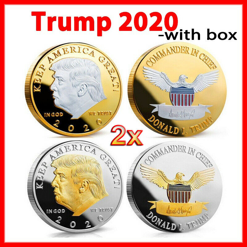 Title (ebay affiliate link): 2x GoId/Sliver Keep America Great Donald Trump 2020 Coins Eagle Challenge Coin