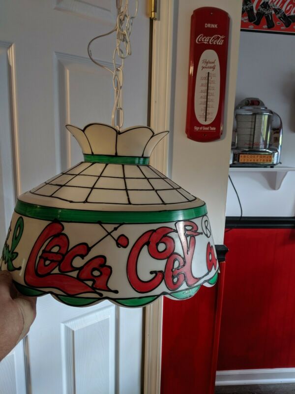 Title (ebay affiliate link): Vintage Drink Coca Cola Plastic Stained Glass Hanging Light Fixture 21"D x 11"H