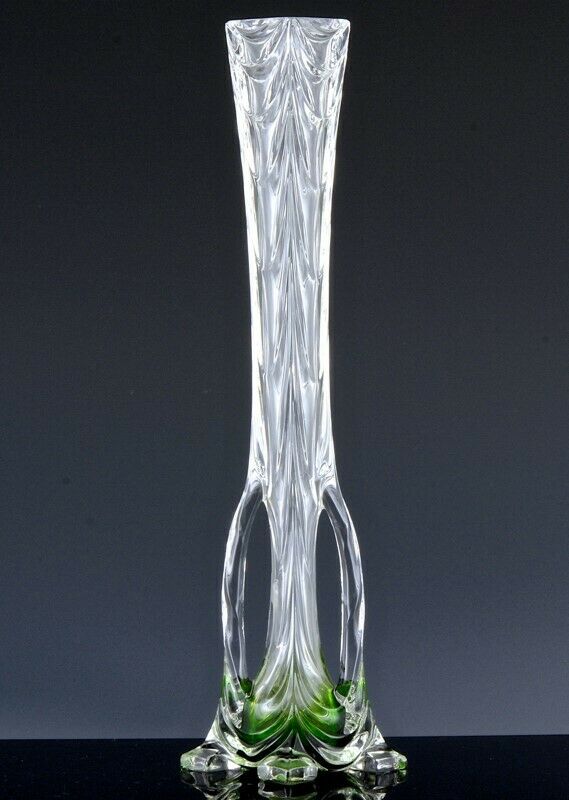 Title (ebay affiliate link): UNIQUE ART DECO EMERLAD GREEN TO CLEAR CUT GLASS SINGLE LONG STEM ROSE VASE