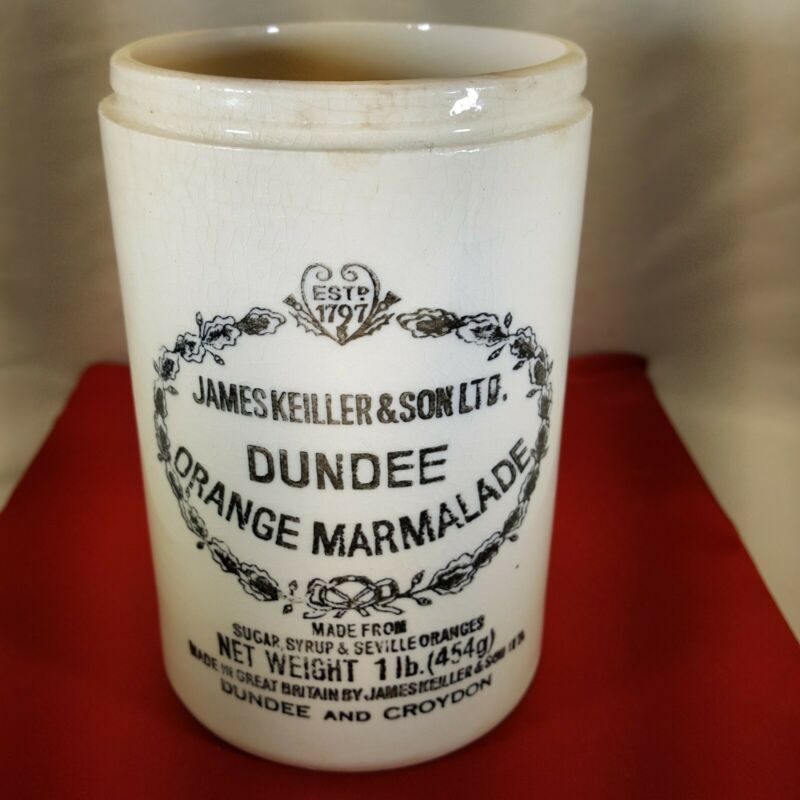 Title (ebay affiliate link): James Keiller & Sons Dundee Orange Marmalade pottery stoneware crock jar N/R