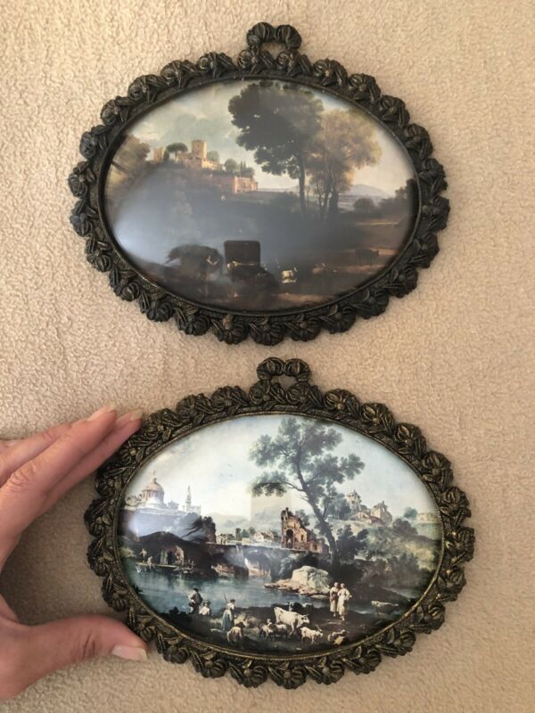 Title (ebay affiliate link): Antique Pair Ornate Metal Picture Frames W/Convex Bubble Glass Old Rome Prints