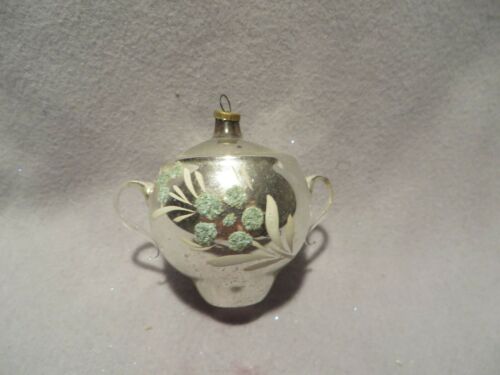 Vintage Blown Glass Silver Sugar Bowl Christmas Ornament