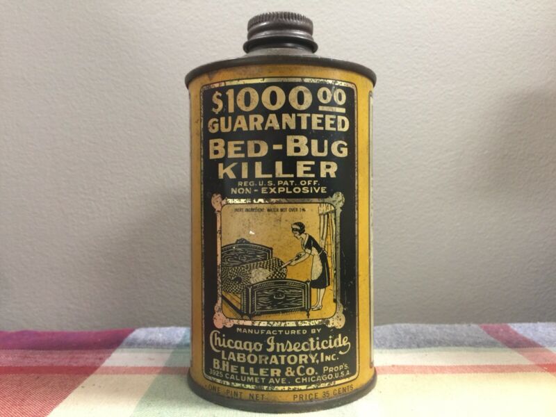 Title (ebay affiliate link): Antique 1928 CHICAGO INSECTICIDE B Heller Co Bed Bug Killer 1 Pint Tin Cone Can