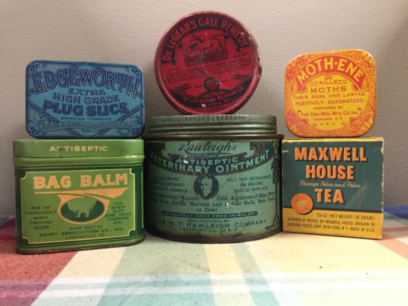 Title (ebay affiliate link): Lot 5 Vintage Tins One Box Maxwell Quack Medicine Balms Antiseptic Tobacco More
